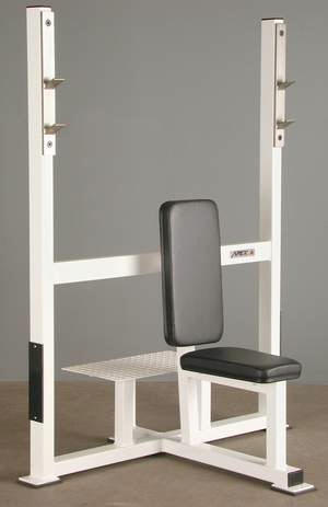 ![]() Wide Grip Military Press Specifications: Size: 56"(W) x 32"(L) x 66"(H) Shipping Weight: 150 lbs. | ![]() Wide Grip Olympic Bench Press Specifications: Size: 48"(W) x 48"(L) x 56"(H) Shipping Weight: 100 lbs. | Apex Fitness Upper Body | |